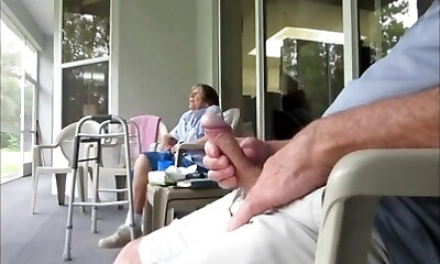 Exhibitionist jerks off in front of ladies