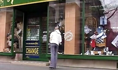 Pleading the girl for information on the street, I took my dick out and masturbated