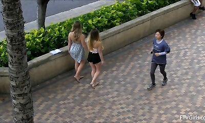 Sexy neighborhood beauties help me cum in a public place.