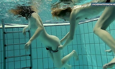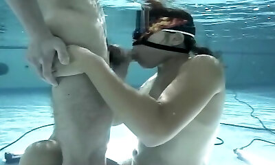 Hidden pool cam trailer with underwater hookup and poking couples in public pools and girls draining with jet streams!