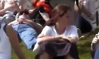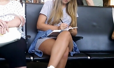 Just have a glance under skirt of sexy and quite bootyful nymphomaniac