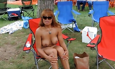 Curvy Big-titted Round-assed Mature Entices a Stranger To Fuck Her Hard In Her Tent On the Beach