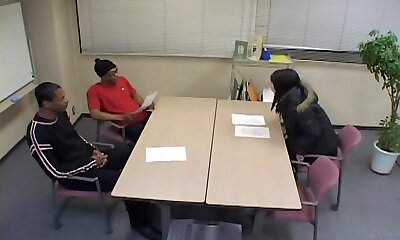Japanese floozy in a hot threesome activity with 2 dark-hued dudes