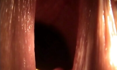 Slow fucking wife's pussy and peeing inwards. Close-up