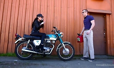 Small milk cans brunette Lucy Sunflower on her knees gargling a stranger