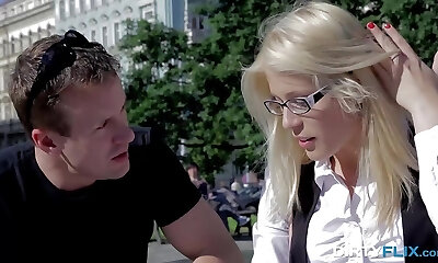 Hot Mature Blonde with Glasses and Brief Hair Helping Boys Real Sweetheart