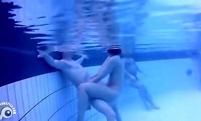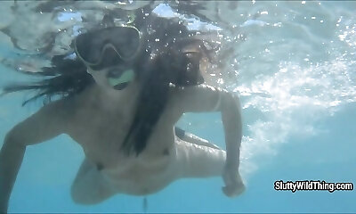 Hidden pool cam trailer with underwater hookup and poking couples in public pools and girls draining with jet streams!
