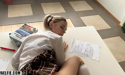 Beauty school girl babe with fat ass and slender body riding a hard fuck-stick deep until crempie her tight and wet pussy