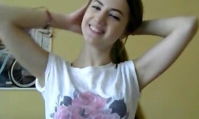 Sweet all naked brunette babe in glasses posed and danced for me on webcam