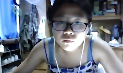 This horny Asian coed is teasing us on web cam with her tail butt plug